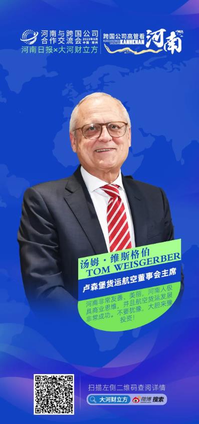9月5日,盧森堡貨航董事會主席湯姆·維斯格伯前來鄭州參加河南和跨國公司交流合作會,同行的還有盧森堡貨航總裁兼首席執(zhí)行官理查德·福森,兩位負責人聯(lián)袂遠道而來,足見他們對河南的重視。