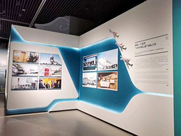 這一主題展板上,精選了10張圖片記錄豫盧共建“空中絲路”的關(guān)鍵事件。既有2014年河南航投與盧森堡貨航在鄭州簽署股權(quán)合作協(xié)議、“鄭州號(hào)”巨無霸貨機(jī)首次抵鄭的起始節(jié)點(diǎn);也有這條絲路承運(yùn)河南省向盧方捐贈(zèng)的抗疫物資、鄭盧直飛客航首批旅客抵達(dá)的溫暖瞬間;還有盧森堡貨航在鄭州加注可持續(xù)航空燃料、鄭盧航線貨運(yùn)量突破100萬噸的喜慶時(shí)刻,精彩講述豫盧雙方在“一帶一路”框架下相融互促,從硬聯(lián)通、軟聯(lián)通到心聯(lián)通的生動(dòng)實(shí)踐。