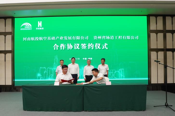 7月16日,河南民航發(fā)展投資有限公司(簡(jiǎn)稱(chēng)河南航投)與四川華西集團(tuán)有限公司(簡(jiǎn)稱(chēng)四川華西)在成都舉行了簡(jiǎn)短而熱烈的簽約儀式,兩家跨省國(guó)企約定,在民航產(chǎn)業(yè)展開(kāi)全面合作。河南航投黨委書(shū)記、董事長(zhǎng)張明超,黨委副書(shū)記、總經(jīng)理、副董事長(zhǎng)劉建葆,四川華西黨委書(shū)記、董事長(zhǎng)楊斌,黨委副書(shū)記、總經(jīng)理、副董事長(zhǎng)馬林出席。張明超、楊斌分別致辭,劉建葆、馬林代表雙方簽訂《戰(zhàn)略合作協(xié)議》,河南航投基礎(chǔ)產(chǎn)業(yè)公司董事長(zhǎng)趙楠和貴州場(chǎng)道公司執(zhí)行董事劉國(guó)呈代表子公司簽訂《合資合作協(xié)議》。