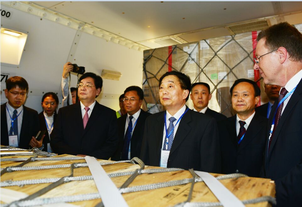 出席盧貨航45周年慶祝儀式的有河南省副省長(zhǎng)李亞、省長(zhǎng)助理安惠元、省政府副秘書長(zhǎng)馬剛。河南航投董事長(zhǎng)、黨委書記張明超,總經(jīng)理、副董事長(zhǎng)、黨委副書記劉建葆,公司領(lǐng)導(dǎo)班子其他成員及相關(guān)業(yè)務(wù)負(fù)責(zé)人參加了慶祝儀式。適逢盧貨航2015年全球經(jīng)理人大會(huì)在鄭州召開,前來參會(huì)的50多位來自全球各個(gè)地區(qū)的區(qū)域經(jīng)理和重要部門負(fù)責(zé)人與中方人員一起,在鄭州機(jī)場(chǎng)見證了這一具有歷史意義的時(shí)刻?,F(xiàn)場(chǎng)工作人員向機(jī)組人員獻(xiàn)上鮮花,隨后,雙方代表登機(jī)視察。