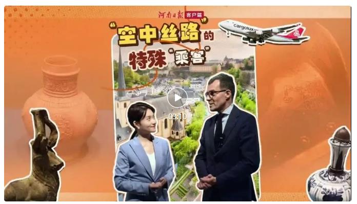 從2013年至今,鄭盧“空中絲路”的建設(shè)在兩國元首的關(guān)注下取得豐碩成果。從兩家企業(yè)的投資合作,發(fā)展到中盧之間的商貿(mào)往來、綠色能源、客運(yùn)旅游、人文交流等各方面。2018年,河南航投與河南省文物局簽署合作意向書,根據(jù)約定,河南航投將提供航空運(yùn)輸便利,共同促進(jìn)河南文物的對外開放和交流、促進(jìn)兩地民心相通,由鄭盧“空中絲路”保障了河南文物從鄭州抵達(dá)盧森堡。當(dāng)年11月在盧森堡開展時,米歇爾·波費(fèi)爾主持了開幕式,河南航投與盧森堡貨航負(fù)責(zé)人一同出席,豫盧雙方在現(xiàn)場達(dá)成深化文化交流的意愿。